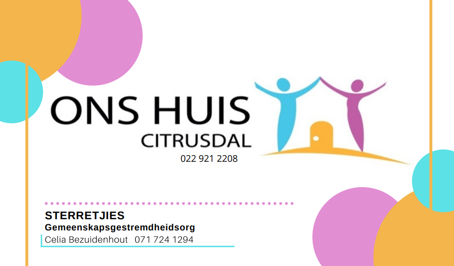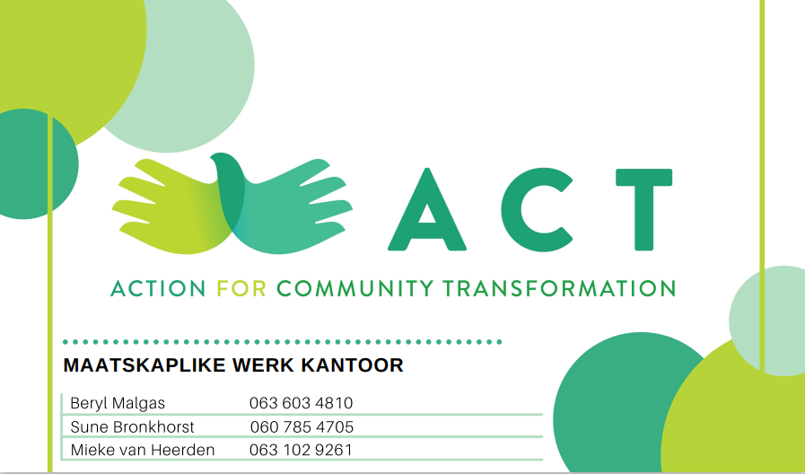 The associations main objective will be to empower families/households to thrive whilst taking faith based ACTION towards co-ordinated and targeted initiatives that address the causes and consequences of deprivation and poverty in Citrusdal and surrounding farms.